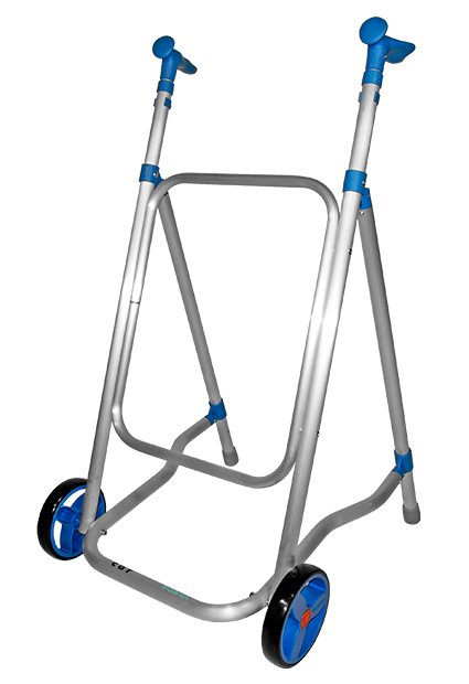 Andador fabricado en aluminio y termoplástico. Ligero y plegable. Diseño ergonómico, regulable en altura. Dos ruedas delanteras fijas, recomendable para personas altas. Disponible en 7 colores. Gran variedad de accesorios. Mesa, ruedas traseras y cesta.